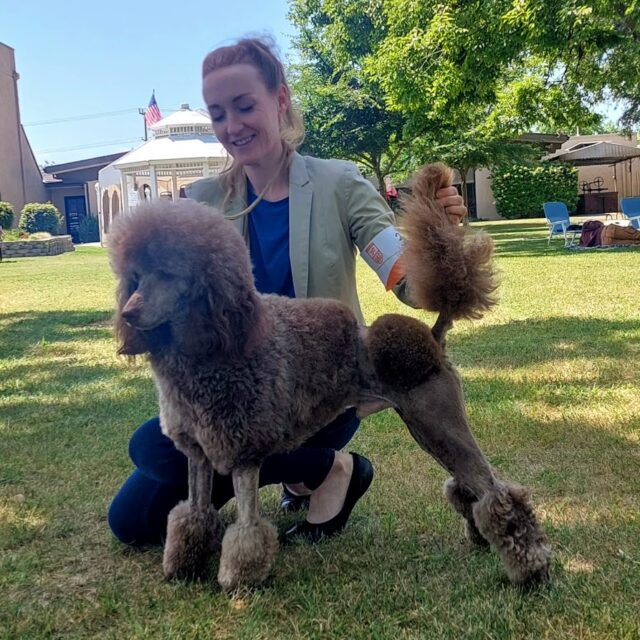Dad is Golden State Good Dogs Mr. Pickles, he is a small standard (Moyen) and has also been fully tested. He is a cafe au lait brindle point, and we should be getting some stunning colors in this litter. We should also get some small and regular sized standards.