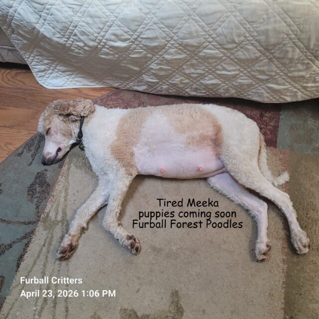 Very soon we will have a new kind of Furball. Puppies! Meeka will be giving birth for the 1st time. She is an AKC Standard Poodle and has been DNA tested and has OFA testing for traits pertinent to the breed.