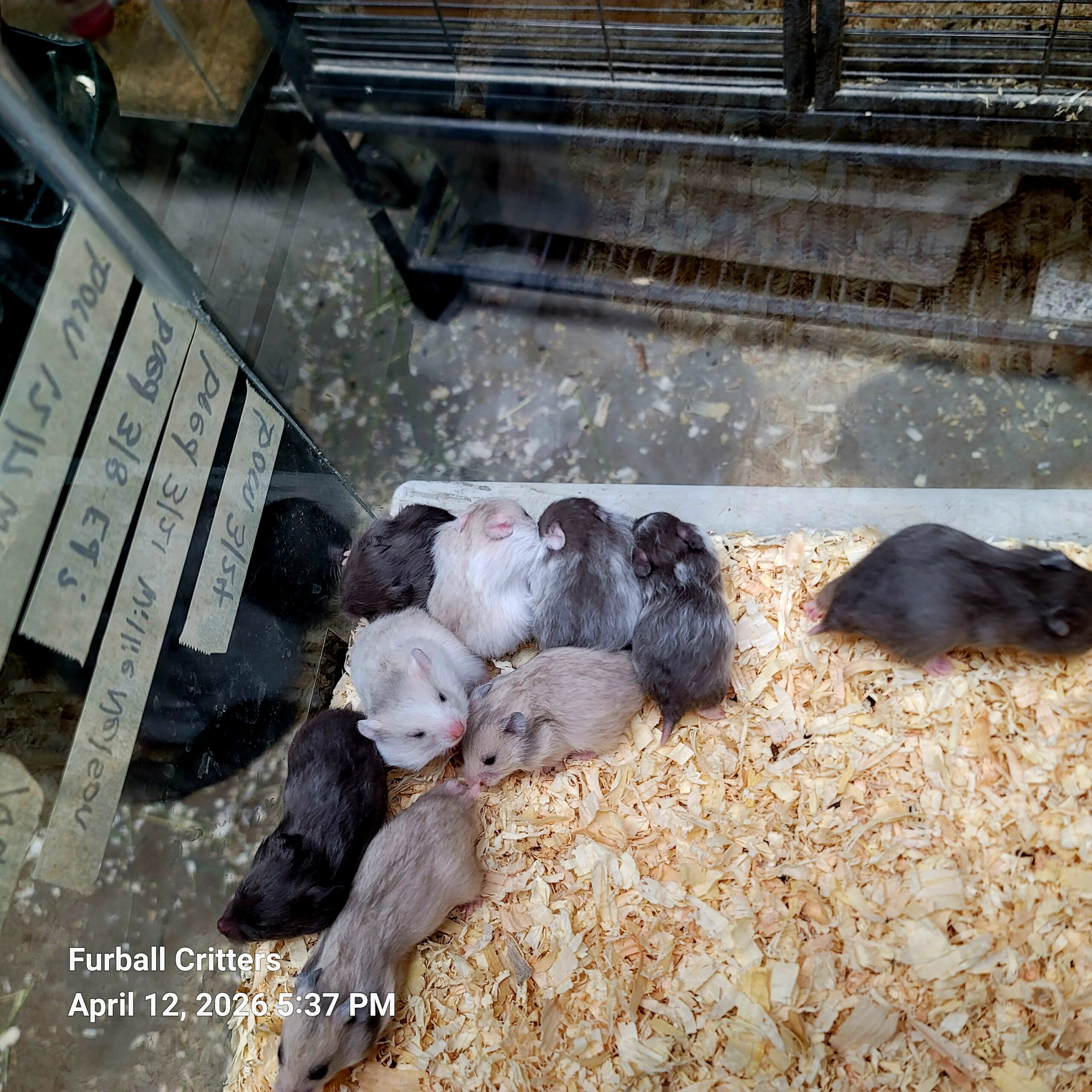 Campbell’s dwarf hamsters, 40 males and 40 females, $25 each